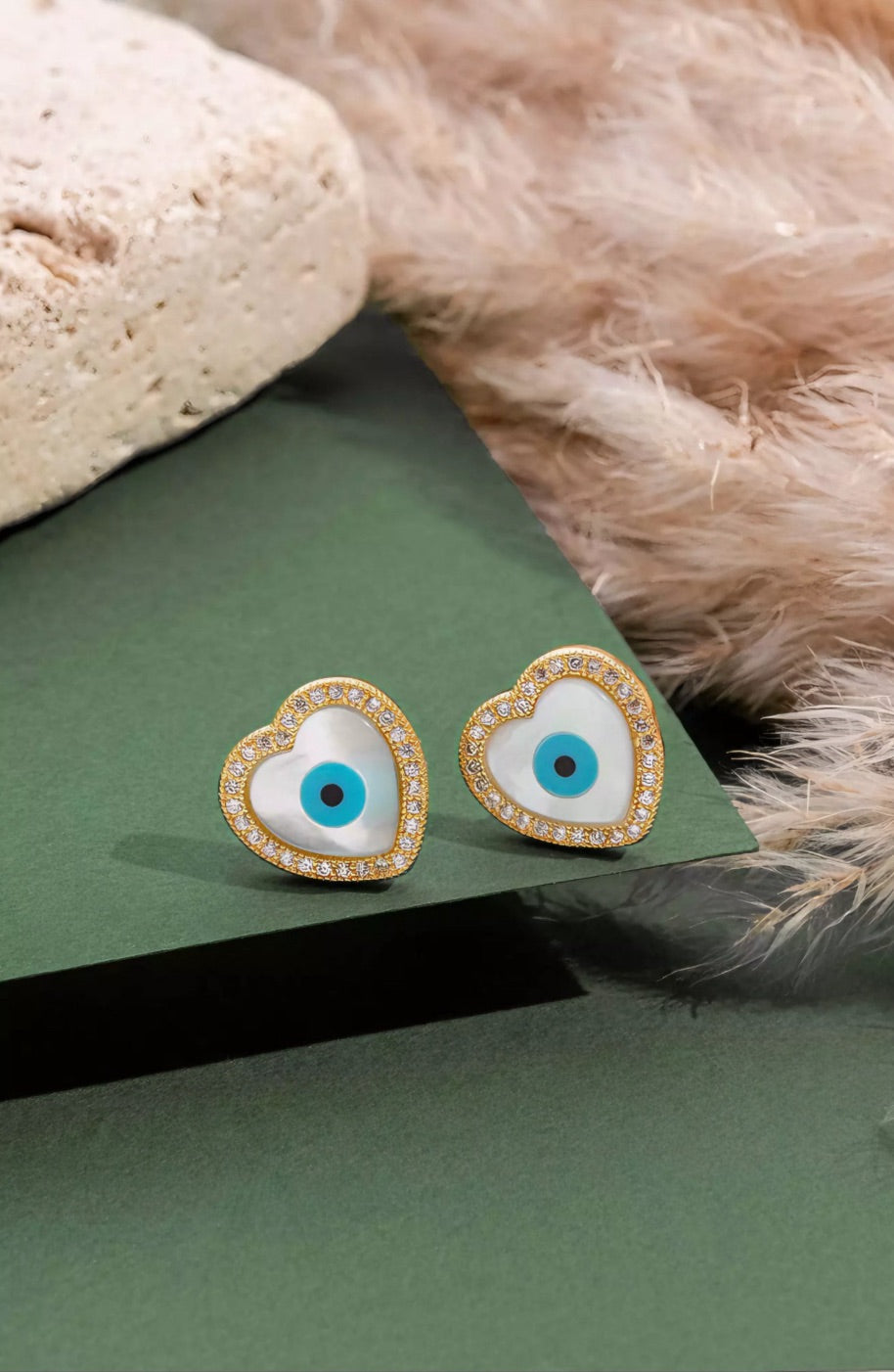 Brinco Coração Olho Grego Cravejado