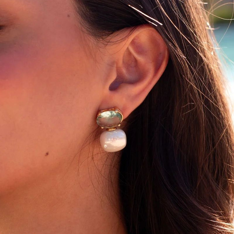 Brinco Pedra Natural com Pérola Shell